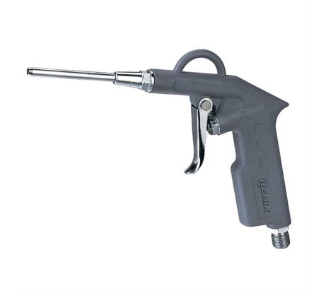 Хороший продувочный пистолет, удобно лежит в руке. Габаритные размеры указал на фото. Длинный носик по конструкции запрессован в стандартный короткий носик, имеет микролюфт, на мой взгляд в пределах допустимого, если нарочно его не пытаться выломать, то ничего не случится. Диаметр сопла 4 мм. По отзывам на другие пистолеты у некоторых возникали сложности с таким соплом - был большой расход воздуха относительно маломощного компрессора. Данный пистолет подключен к компрессору Atlas Copco GX11 FF (7.5 бар, 1620 л/мин, ресивер 270 л.). У меня проблем нет.
