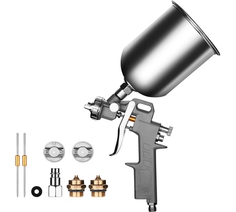 Обычный краскопульт. Присоединение либо резьба, либо быстросъёмное соединение. Регулировки расхода воздуха и краски присутствуют. Распыл нормальный. Есть небольшое подтекание по штоку.
