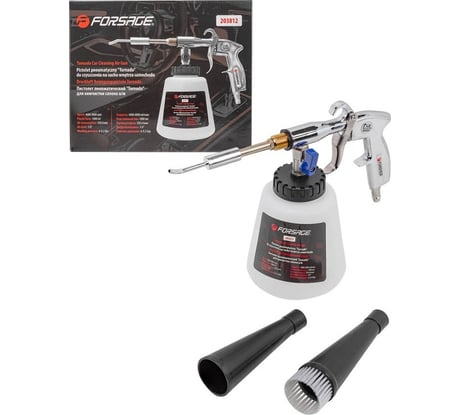 Торнадо неплохой, качество товара достойное, в комплекте две насадки, для работы нужно высокое давление ни ниже 8 бар и компрессор с большим расходом воздуха. Быстросьем обычный, сидит плотно на переходнике.Брал для чистки салона авто.