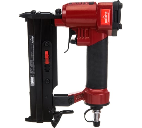 Отличное соотношение ЦЕНА-КАЧЕСТВО. Шпильки в МДФ забивает как в масло, соединение крепкое. Есть предохранитель от случайного нажатия спуска. Прорезиненная рукоять, не скользит в руке. В комплекте идет масленка с маслом. Есть кейс. Забил около 1000 шпилек, ни одной осечки, ни одна не застряла (бил шпильки крафтул, заказал тут же). Место удара еле заметное. В обойму вмещается одна кассета - 100 шпилек, но место еще есть, для половины кассеты точно. Шпильки устанавливаются снизу, стрелкой по направлению удара. Сделан качественно. Сколько прослужит, покажет время, есть гарантия 2 ГОДА. С инструментом Elitech знаком, есть еще перфоратор, который работает уже 7год на монтажах. Инструмент не плохой, сделан качественно. В комплекте подарок - очки, которые правда были раздавлены внутри кейса. Крепил МДФ решетки, пистолет с задачей справился на отлично, результатом доволен. Для установки наличников, вещь незаменимая, намного ускоряет процесс.