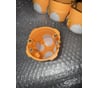 Очень прочный пластик, не лопается при сверлении, как яичная скорлупа (ТМ "GUSI"). Глубина: 40 мм: умещается все что нужно- без доп. выборки бетонной "породы"- мньше щебня и трудозатрат при бурении лунок.