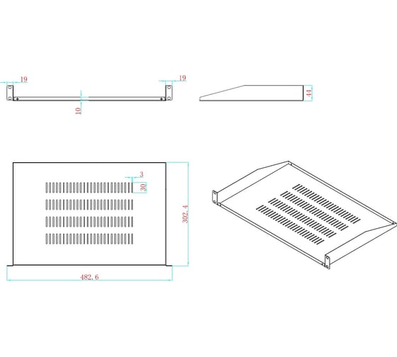 Полка консольная для сетевого шкафа 5bites D=300 / 254*150*1U / 10 / GREY CS205-300G