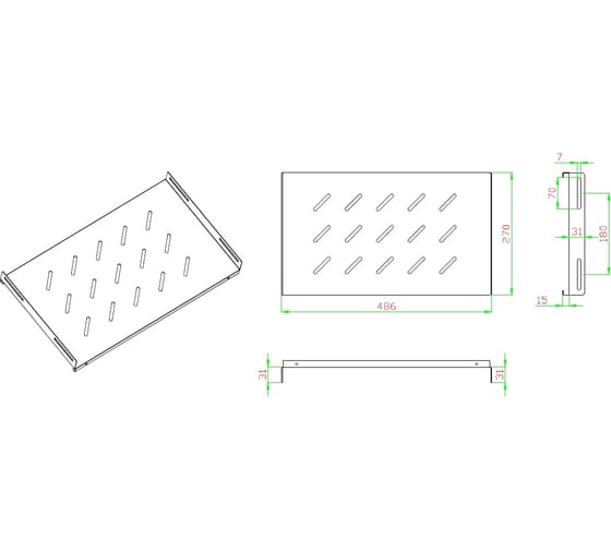 Стационарная полка 5Bites для сетевого шкафа d=450 / 490x270x1u / 19" / grey CS201-450G