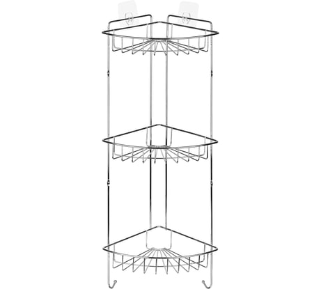 Полка массивная вместительная. Покупал для душевой кабины. Повесил крючками на заднюю стенку, и установил присоски по периметру, чтобы не стучал металл об стекло (при случайном касании).