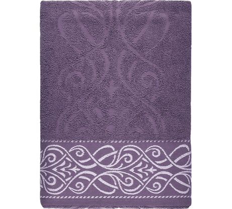 Приятное на ощупь махровое полотенце средней плотности без зацепок и прочих дефектов ткани. Имеет аккуратный вид, хорошие швы. Размер после первой стирки 136x66 см. Рисунок отсутствует, но у одной из коротких сторон три декоративных вшивных полоски из тонкой блестящей фиолетовой тесьмы. Согласно фабричному ярлыку, допустимая температура стирки 60C, однако уже при 40C во время первой стирки полотенце утратило благородный серо-синий цвет и стало фиолетовым (на фото оно рядом с тёмно-синей футболкой для сравнения).