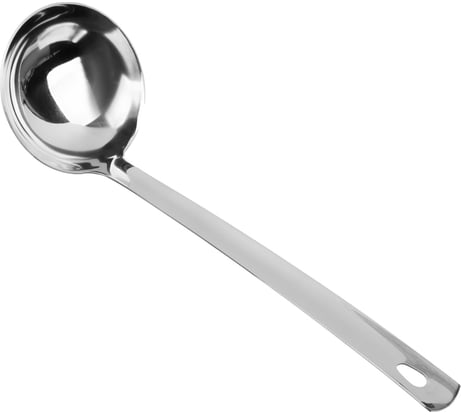 Хорошо моется. В руке держать удобно. Черпак неглубокий, поэтому хорошо, когда в кастрюле немного еды остаётся.