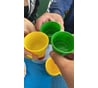 Достоинства: Отличный набор посуды. Качественный толстый пластик, особенно чашки очень крепкие. Крышку можно использовать в качестве подноса. Понравилось, что у тарелок есть крышки.