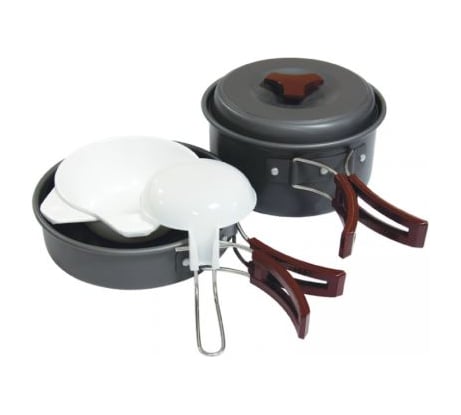 Для использования двоим - отлично. Объем занимаемый в рюкзаке небольшой, есть все, что надо. На костре готовить не получится, ручки металические покрыты силиконом, он может обгореть. На газовой плитке стоит отлично. Рекомендую