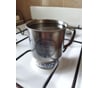 Большая и легкая кружка. Края ровные. Ручка приварена не строго вертикально, а под небольшим углом (абсолютно удобное удержание). Сварка ручки надежная, в четырех точках. Ручка не нагревается, если наполнить кружку кипятком (на газовой плитке не тестировал).