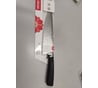 Цена. Реальная цена 250-350р. Больстерное кольцо на рукоятке со временем начинает двигаться, ходить, но это никогда не мешало работе... При работе сам нож гуляет (слишком тонкий и мягкий), затертый (благодаря упаковке и самому качеству металла), заточка неровная косая (у Фискарса бывают такие же косяки) и линия кромки неправильная - пришлось мусатами вправлять, легкий вес (нож такого типа должен быть толще и тяжелее), тонкий обух. Два раза им работал, резал огурец и салатный лист - этого хватило чтоб он поцарапался. ТимА (российская марка, пр-во Китай) такого же "японского разлива" у меня уже два года в активной работе и он выглядит намного лучше (есть на фото) этого новичка из коробки. Профессиональный повар забраковала его тут же, подержав в руке...