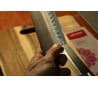 нож пришкл с дефектом в виде замятия (с заусенцем естественно) на режущей кромке. исправил на алмазном бруске.