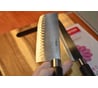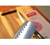 Режет! Острая кромка, хоть и с косяками, грантоны у кромки (работают, прилипает совсем немного...), заточка с двух сторон, заточка симметричная, острая пятка лезвия, удобная пластиковая овальная рукоятка приличной длины (для мужской руки), легкий вес (для женщин плюс). Тем, кто готовит самыми простыми дешевыми китайскими ножами с рынка, скорее всего понравится.