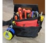 Отличная сумка для того, чтобы положить набор инструмента для основных работ по электрике. Качество супер, как и у всей продукции этого бренда. По вместимости достаточно. Влезает: большие пассатижи кусачки, утконосы, кабелерез, отвертки 4 штуки, зависит от размера, нож, ножницы. Два наружных больших кармана остаются в резерве для чего-либо ещё, типа расходки или мультиметра. Есть петля для молотка, резиновая петелька для карандаша/маркера, ремешок для изоленты. Из недостатков, на мой взгляд. Короткий ремешок для изоленты, максимум 3 мотка влезает. При этом пользоваться неудобно, если сумку повесить на поясной ремень справа, то петля с изолентой будет сильно сзади, тянуться далеко. Можно вешать сумку на комплектный плечевой ремень и для работы перемещать на живот, тогда нормально. Этот плечевой ремень, вернее, скобы, к которым он крепится, прошиты недостаточно и со временем под нагрузкой скобы будет выворачивать. Но это, скорее, мои придирки, в целом сумка прекрасна подойдёт для использования в качестве небольшой, но вместительной инструментальной сумки электрика, домашнего мастера.