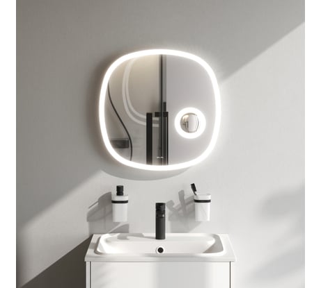 Зеркало брала немного не по назначению, но уж больно понравилось. Повесила его аккурат над туалетным столиком. По форме практически квадратное, а размер для меня оптимальный. Наличие подсветки определенно плюс, так как при коррекции бровей и нанесении макияжа видна любая мелочь. Полотно качественное и волнами не идет.