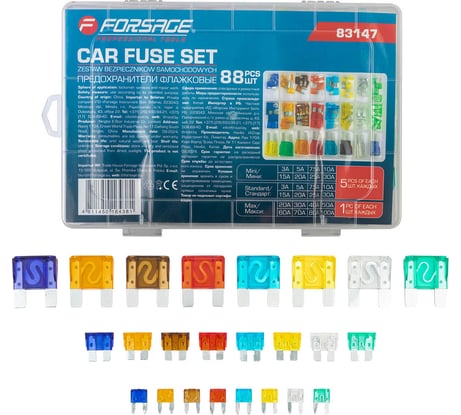 Отзыв Предохранители плавкие флажковые автомобильные Forsage (от 3А до 100А), комплект 88 предметов F-FS-100(64840)