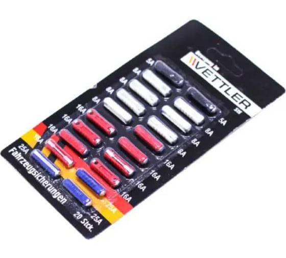Предохранитель плоский VETTLER 5А-40А (12шт) с пинцетом, блистер VE540