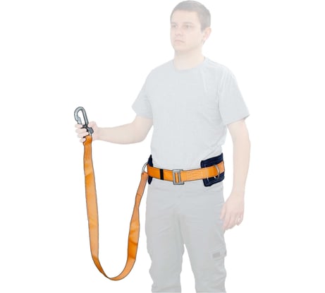 Главное разочарование - карабин на стропе. Хорошо, конечно, что строп не цепь, веса лишнего нет. Но карабин и маленький, и зев у него узкий, и открывать/закрывать его неудобно!!! Одной рукой, порой, и не справиться, а вы вроде как на высоте и цеплять/перецеплять карабин хочется практически не глядя. За небольшие пруты (ступеньки лестницы переходной на крыше) зацепить смог. За снегоуловители уже никак! Получился строп для того, чтобы лопата не улетела... А в качестве страховочного использовал другой строп с нормальным карабином.