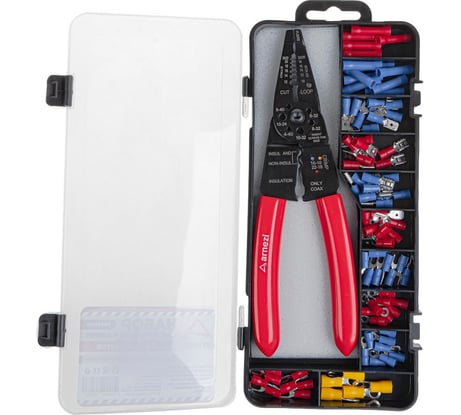 Наличие различных наконечников и клемм в комплекте. Плюс сам стриппер с несколькими стандартными величинами кабеля, на нем нанесена разметка для обжима соответствующих цвету наконечников и клемм и самого набора, чтобы не путаться. Простота в обращении.
