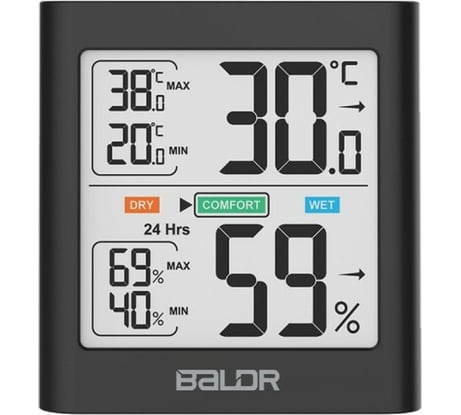 Коррекции к описанию прибора: Согласно User Manual: Диапазон измерения влажности воздуха (Humidity Range): 20%-95% Батарейка: 1хААА (можно аккумуляторную 1.2-1.3В) но не CR2032 (см. фото1). В целом хороший прибор, работает, может быть слегка дороговат.