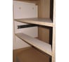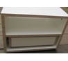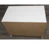 Подвесная тумба с двумя металлическими петлями для подвешивания в комплекте. Петли снаружи облицованы белой пластмассой. На практике используется не как подвесная тумба, а как напольная тумба для секции стеллажа. И поэтому петли для подвешивания к ней не прикручивались. Выполнена из качественных материалов ЛДСП, снаружи облицована структурным под дерево шпоном, но белого цвета. Заметный минус конструкции - в комплекте не предусмотрено задней стенки из ДВП. Рассчитано, что её роль будет выполнять стена. Так как тумба была рассчитана на размещение на полку, пришлось вырезать заднюю стенку самостоятельно из листа ДВП. Но если крепить её на стене, то правый отсек тумбы сзади тоже лучше снабдить квадратной стенкой из ДВП. Собирается несложно, выдвижной ящик на роликовых направляющих. Тумба снаружи смотрится отлично и вполне удобная для своих габаритов, поэтому оценку за отсутствие задней стенки занижать не будем.