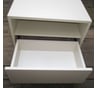 Компактная симпатичная тумбочка с выдвижным ящиком и полочкой. Удобная в размещении и эксплуатации. Собирается несложно, на неспешную сборку ушло порядка двух часов. Цвет отделки - белый шпон с текстурой под дерево. Компоненты изготовлены качественно, при сборке все отлично подгоняется. Выдвижной ящик компактный на роликовых направляющих. Как недостаток отметим отсутствие задней стенки тумбочки в комплекте. Ее пришлось вырезать специально из листа ДВП, размер задней стенки понадобился 400x290мм. С задней стенкой тумбочка приобретает завершенный внешний вид. В комплекте идут четыре высокие ножки из пластика черного цвета, которые способствуют удобному, приподнятому над поверхностью выдвижению ящика.