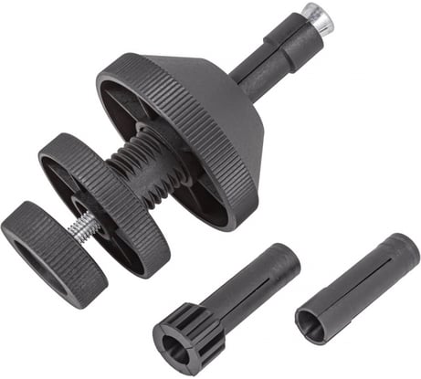 Очень просто и быстро центрируется диск относительно корзины, корзина затягивается, приспособление легко вынимается. После даже проверил сам, заглянув внутрь (вообще и покупался данный инструмент по причине тог, что трудно выставлять визуально) - итог был очевиден - 5 из 5 с плюсом. На данное приспособление в комплекте 2 других переходника, что делает его универсальным для многих легковых автомобилей.