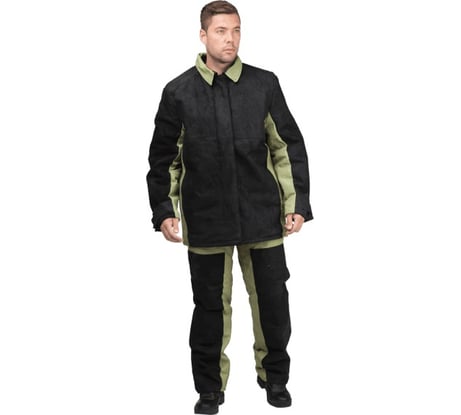 Обычный брезентовый костюм. Искры и прочая летящщия фигня от сварки его не прожигают.