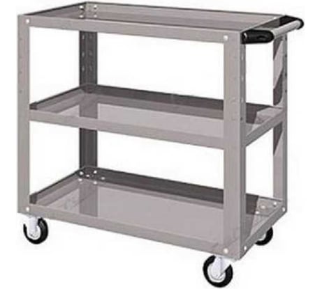 Прочная тележка. В мастерской уложено много инструментов- полки держат, не прогибаются. Легко катается.