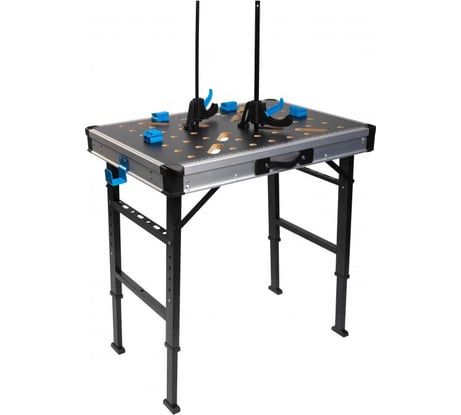 Отличный верстак для работ! Складывается легко, места занимает мало. Регулируется по высоте, удобно работать. Столешница прочная, не прогибается. Контейнеры для мелочей - это просто супер, все под рукой.