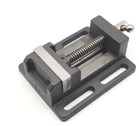 Нормальные тяжелые тиски. 3,68 кг. Днище ровное, фрезерованное. Направляющая к месту, вероятность перекоса губок в разы меньше, чем у "обычных" тисочков. Губка идет ровно, не закусывает. Но есть "но" - сильно затягивать заготовку я бы не рискнул, чугун сырой, лопнет обязательно. За эти деньги - наверное нормально, для "обычных" работ со сверлильным станком подойдет. Выглядят надежно. Ну а как себя покажут - вопрос времени.