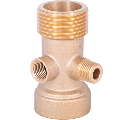 Фитинг 4-х ходовой - то есть 3резьбы по 1 дюйму - к гидроакккумулятору и для подключений комплектующих с двух строн. Четвёртая резьба для подключения регулятора давления. Есть пятиходовые - с дополнением для манометра. Их лучше не ставить. Манометр получается снизу, вниз головой и, по причине попадания на него конденсата в тёплое время - корродирует и выходит из строя чрез 2-3 недели.