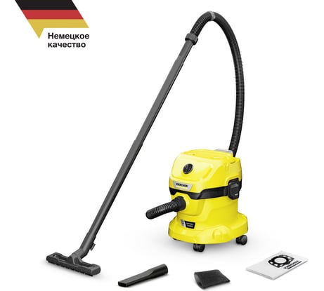 Критерий выбора был-универсальный пылесос гаражного хранения для уборки машины и гаража, периодическими работами с электроинструментом (столярка), возможный ремонте в квартире. Выбор был между этим пылесосом и Bosch GAS 12-25 (цена при наличии скидки одинаковая). Отказался от Bosch из-за предфильтра, который со временем станет очень пыльным и каждый раз открывая пылесос будет обсыпаться. Что понравилось: пылесос легкий и компактный. Высота пылесоса позволяет его перевозить в багажнике в вертикальном положении. На даче более пяти лет трудится WD 5, его перевозить только на боку или снимать полку багажника. Для моих нужд длинны шланга хватает более чем. Этому способствует и подключение шланга к пылесосу вверху под углом. Из-за такого расположения шланг не елозит к примеру по бамперу при уборке багажника. Выход воздуха, смотрим на розетку, с правой стороны. Там два выхода, ближний к шлангу сильно выдувает, ближе к кабелю питания поток воздуха в два раза слабее. С левой стороны пылесоса забор воздуха. Шланг и кабель питания на пылесосе фиксируются и при переноски или хранении не слетят. Неоригинальных, но добротных мешков для пыли великое множество. Для уборки машины придётся докупать две насадки с мягкой щетиной для пластиковых панелей и широкую для для уборки багажника. Пылесос полностью оправдал мои ожидания.