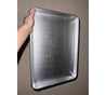 Очень мягная сталь (алюминий?) - удается оставить вмятины даже пальцами рук, тонкая сталь(алюминий?) способствует искривлению противня при пренеосе на нем заметного груза - например 2, 5 кг птицы, легко повреждается внешнее покрытие противня - остаются царапины , например при передвижении на сетке духовки