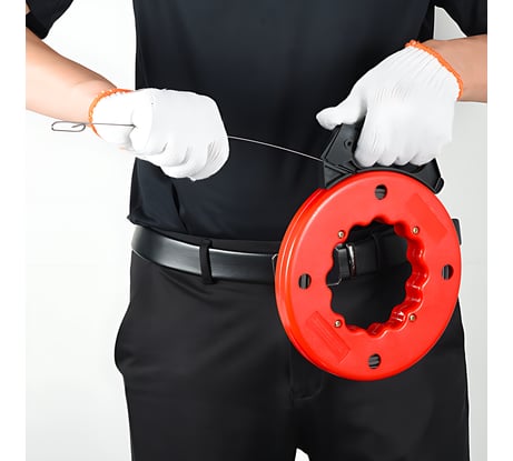 При протяжке кабеля через пнд трубу красиво размоталась, кабель был подцеплен. При сматывании протяги на катушку внутри пошла на перекос. Изматерились просто все. В стеснённых условиях, на морозе, без возможности уложить протягу в катушку просто выкинули её на улицу, вытягивая кабель руками. Не ждите, что она красиво уложится в бухту, как какая-нибудь рулетка. Это адовая штука опутала нас с головы до ног. В итоге выкинул корпус катушки широко размахнувшись на помойку. Протягу свернул и повесил на гвоздик. Она крутая. Задумка с катушкой - провальная.