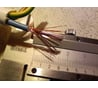 - Провода из меди(судя по макросъемке и сопротивлению). - Каждая жила покрыта тальком(белый налет на синей и коричневой изоляции). - Каждая жила подержит 27 проволочек. - Сопротивление щупов китайской тестилки - 1,1 Ом. При измерении одной жилы 50 метров он показывает 1,7 Ом. Вероятно жила порядка 0,6 Ом (0,012 Ом / метр) - Толщина одной жилы - 1,4 мм.