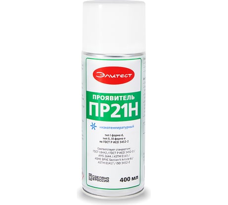 Проявитель трещин ПР21Н от Элитест оказался надежным инструментом для выявления скрытых дефектов в металлах и сплавах. Формула продукта специально разработана для использования при низких температурах, что существенно расширяет возможности диагностики вне зависимости от климатических условий. Ёмкости объемом 400 мл хватает надолго, экономичный расход и высокая концентрация активного вещества способствуют снижению затрат на диагностику. Применяется легко, равномерно распределяется по поверхности, выявляя мельчайшие трещины и дефекты. Раствор быстро высыхает, образуя тонкий слой, облегчающий визуальное обнаружение изъянов.