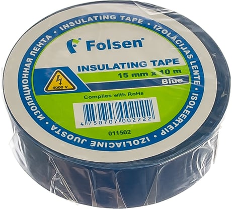 Изоляционная лента Folsen – при кратковременном воспламенении не горит, отлично прилипает (при сминании разъединить возможно), обмотка на аккуратный картонный ободок, достаточно тонкая (напоминает клейкую плёнку, идеально для изоляции тонких проводков). Допускается растягивание до 2\3 кг (обратно не стягивается), при этом рвётся при растяге уже от 4-кг. На этикетке нет данных о толщине ленты и даты производства.