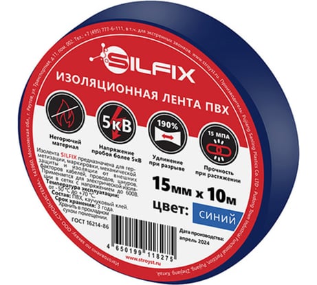 Отзыв Лента изоляционная Sila SILFIX ПВХ, 15 мм, 10 м, цвет синий, 1 шт. SILFIX_1510blue