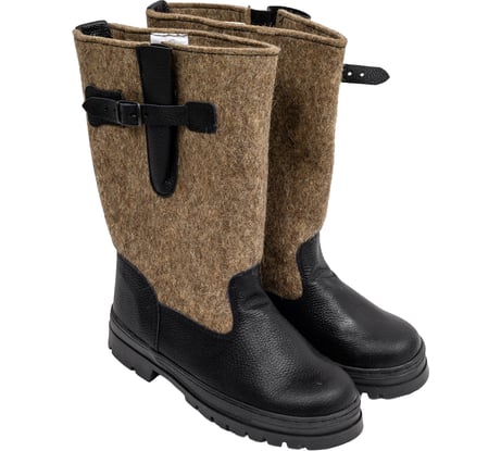 Сапоги не такие как на фото, а как на фото у сапог 45 размера. Выглядят грубее- и подошва, и голенище. Но ремешок стягивающий голенище вроде понадежней. Подошва хуже. ТЭП а не резина. На ноге сидят вроде неплохо. Как обычные валенки. Ходить в них постоянно вряд ли возможно. Скорее кратковременная работа в глубоком снегу. Голенище плотное, но довольно мягкое. Союзка похоже утеплена не войлоком, а синтетиком довольно тонким.