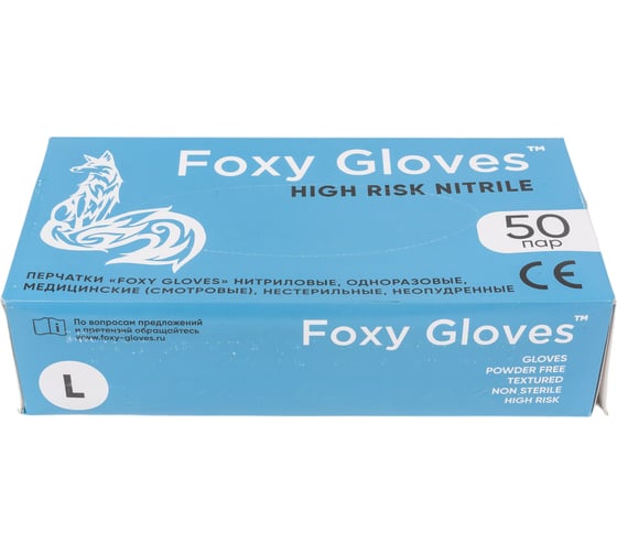 Перчатки нитриловые Foxy голубые 3 гр, размер L, 100 шт 215736