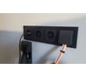 Хорошо прилегает к стене, прижимается лицевыми частями розеток. Покрытие приятное, стойкое. Не просто покрашено в чёрный цвет, а и менно подложка чёрная тоже, т.е. сам пластик чёрный. Покрытие приятное, следы от рук не остаются на поверхности.