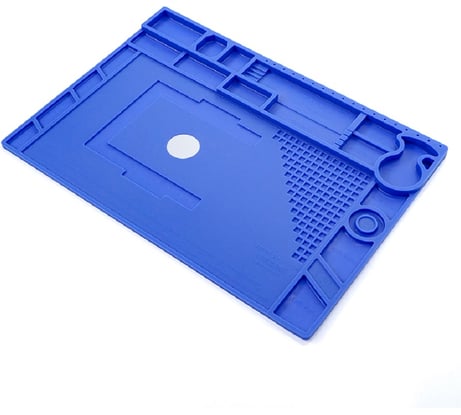 Пользуюсь, материал плотный, не прокалывается и не проливается, хорошо защищает стол, очень удобные отсеки для деталей, винтики и компоненты не теряются)