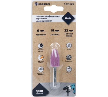 Отзыв Насадка абразивная цилиндрическая 16x30 мм MONOGRAM 107-585