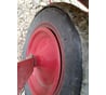 Для полиуретанового колёса нормально. Обод покрашен нормально, ржи нет, покрышка жёсткая. С гружёной тачкой плохо преодолевает бортики и лежащие поперёк палки ветки, в отличие от резинового, накатывается и отскакивает. По ощущениям по земле идёт тяжелее чем на дутых колёсах.
