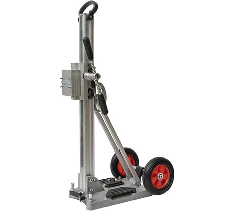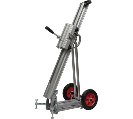 Бурим отверстия под кабельные трассы в межэтажных перекрытиях. Платформа надежно крепится на гладком бетоне, установка занимает минуты.