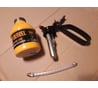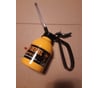 Крепкий пластик, бортик загнут во внутрь, яркий цвет (легко найти, и остатки жидкости видны хорошо) , носик имеет разные диаметры, что удобно при использовании на разной технике, в комплекте удлинитель, не течёт, имеется сетка от мелкого мусора.