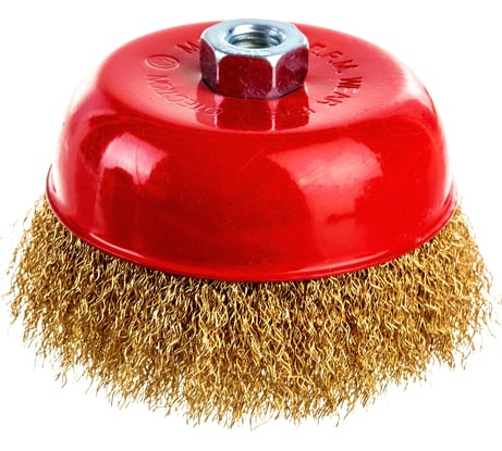 Закрученные проволочки меньше вылетают при вращении данной щетки, крепление на болгарку