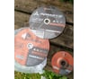 Диск огонь! 40 полных резов арматуры Ø32 мм по 25-30 сек! На диске указано, что и по нержавейке идет тоже, тут не проверяли, но что по арматуре и швелеру работает отлично - факт! Абразив раскрывается на первом резе через 30-35 сек работы (как-будто прогревается или вскрывается первый запечённый слой), а потом сам идет (!) никакого нажима. Не звенит как бывает с другими.