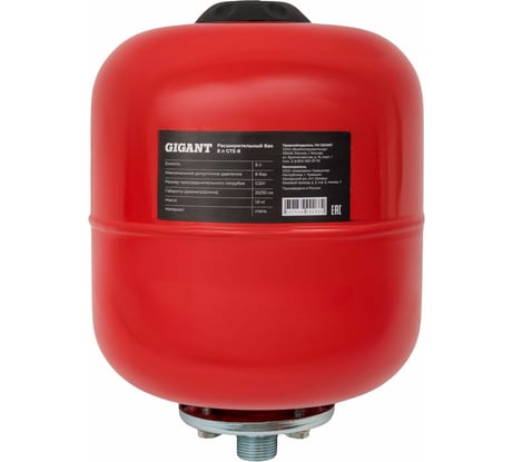Искал недорогой, но качественный расширительный бак для дачного отопления . Посоветовали гигант. 8-литрового объема хватает для моей системы, давление держит отлично. Установка заняла минимум времени, проблем с подключением не возникло.