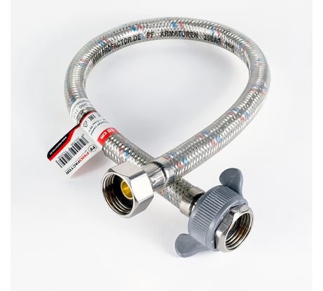 Немецкий бренд, очень хорошие характеристики данного шланга в самом паспорте изделия, подчеркивающие его надежность и долговечность и способность к перегрузкам в нашей водопроводной сети. Удобство завинчивания данного шланга без дополнительных гаечных ключей, за счет встроенного своего ключа на конце шланга.